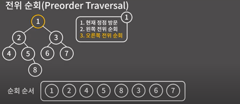 - 순회 순서 $4 \rightarrow 8 \rightarrow 5 \rightarrow 2 \rightarrow 6 \rightarrow 7 \rightarrow 3 \rightarrow 1$
