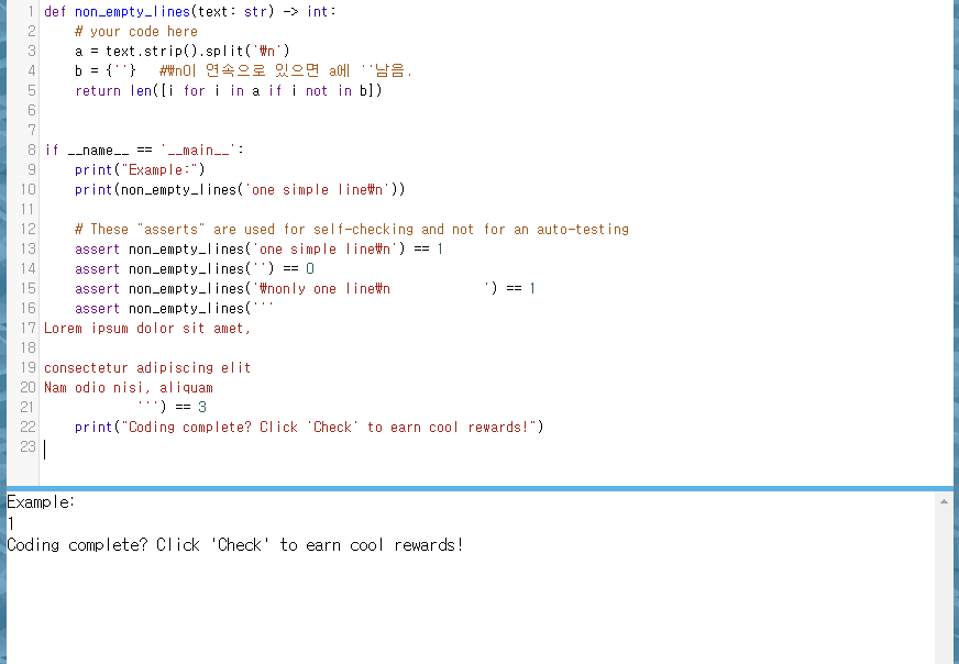 이렇게 다시 짜고 Run Code 해보니 저렇게 나와서 Check Solution 해보니