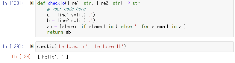 처음 코드를 짰을 때 저렇게 오류가 났다. 도대체 저 ,hello에서 , 가 어디서 나온건 지 모르겠어서 어쩔 수 없이 주피터 노트북에 5번째 줄까지 코드를 쳐서 결과를 확인해봤다.