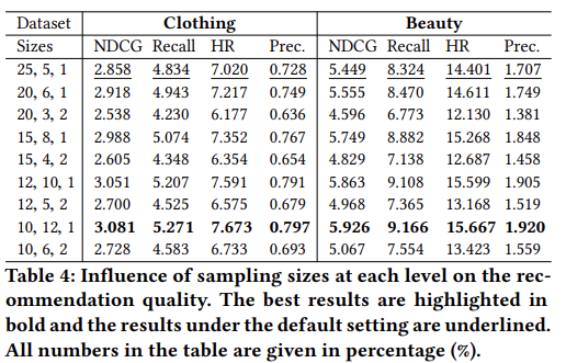 - Clothing과 Beauty 데이터셋에서 실험을 수행하고 다른 매개변수의 기본 설정을 따름
