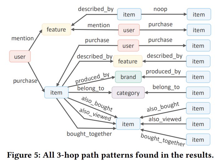 - 경로가 valid하다고 간주되려면, user로부터 시작해 3개의 hop이내에 item 엔티티에서 끝나야 함. (즉, 경로에 최대 4개의 엔티티 존재 가능)