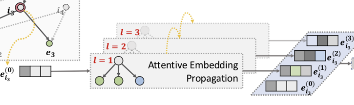 더보기임베딩을 재귀적으로 전파하여 노드의 임베딩을 개선한다? : 노드(사용자, 아이템, 속성)의 임베딩을 주변 노드로부터 반복적으로 받아들이고 이를 통해 노드의 임베딩을 점차적으로 개선해 나간다는 의미